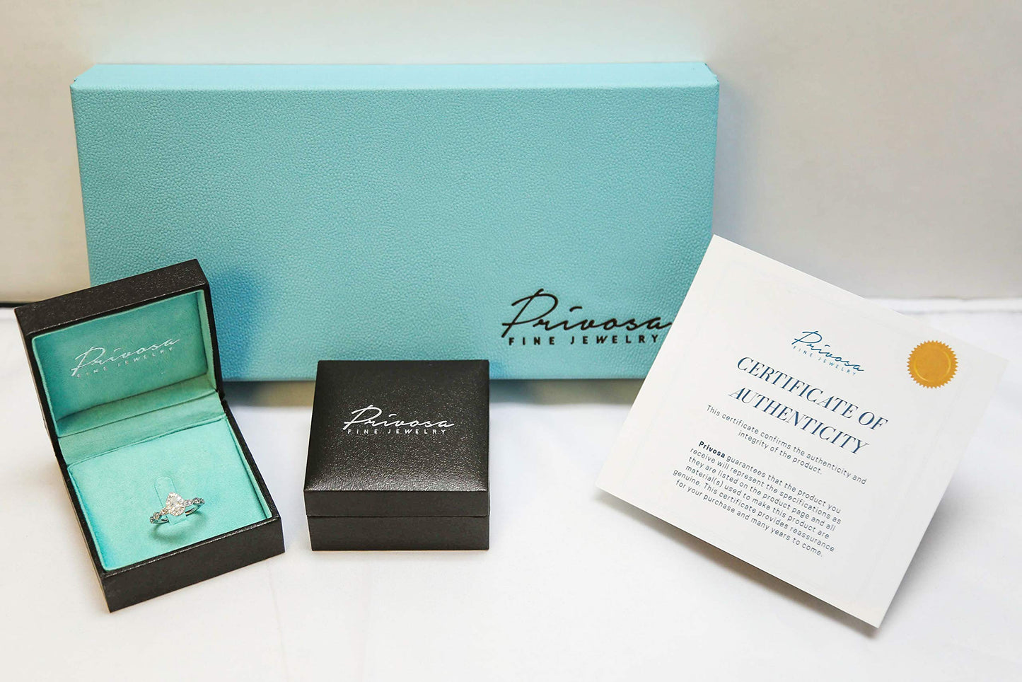- PACKAGING: ALL Privosa Fine Jewelry is packaged in our signature turquoise jewelry box which is then placed in a protective outerbox. Every piece is accompanied by a free Certificate of Authenticity.
