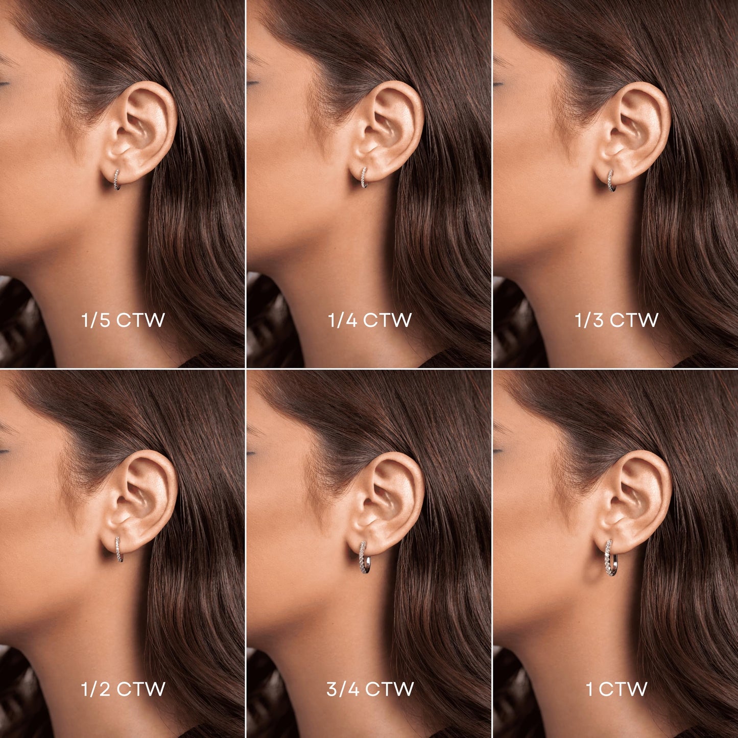 1/2 to 1 Carat Lab Grown Diamond Huggie Hoop Earrings for Women I 14k White and Yellow Gold Hoops (E-F, VS1, cttw) Hinged Hoop Earrings by Privosa Fine Jewelry