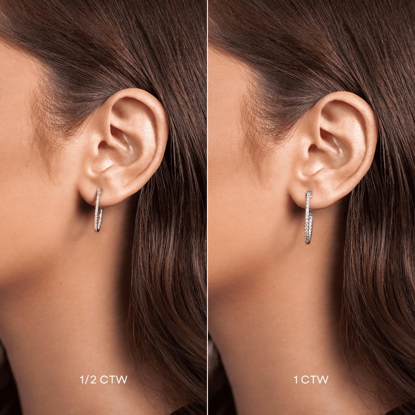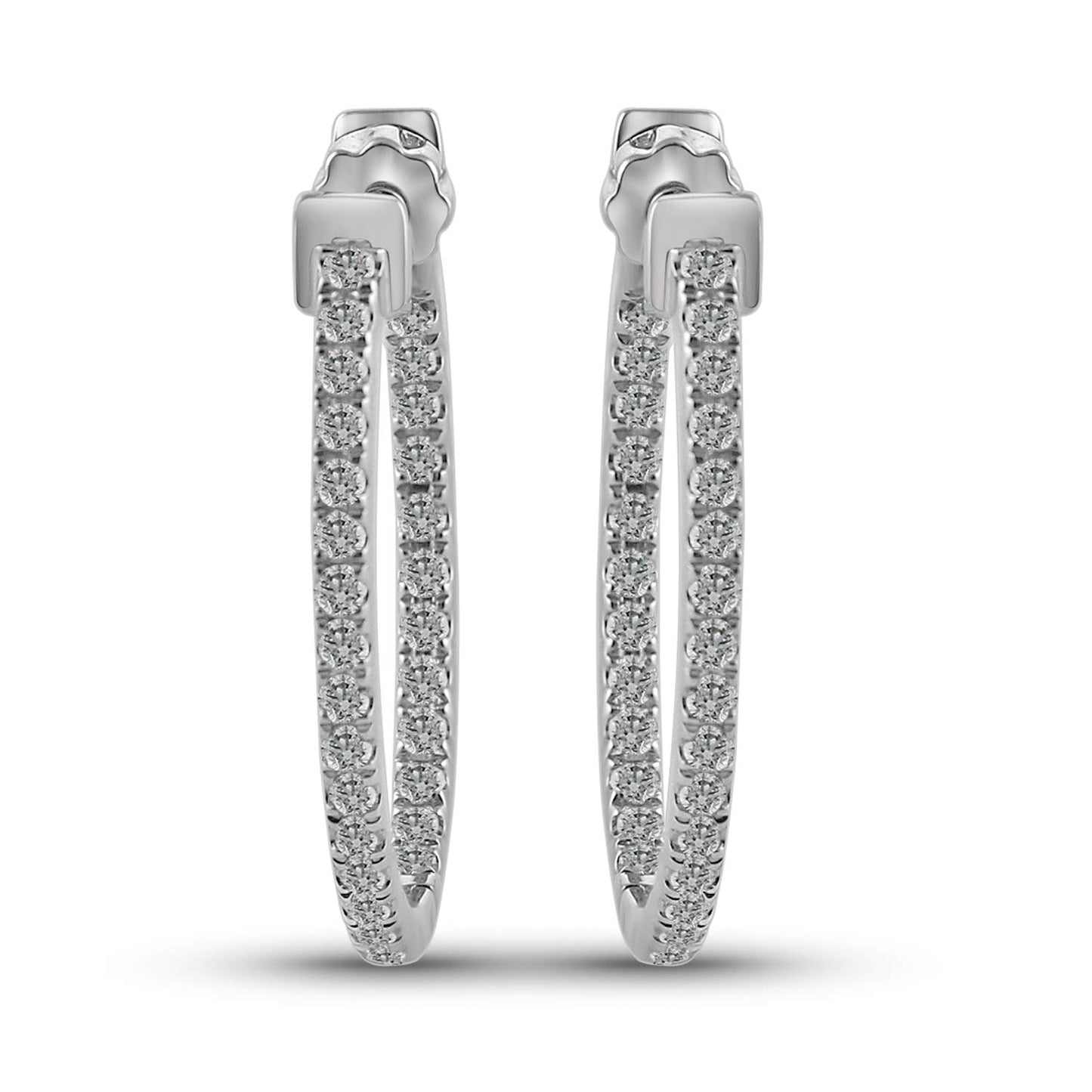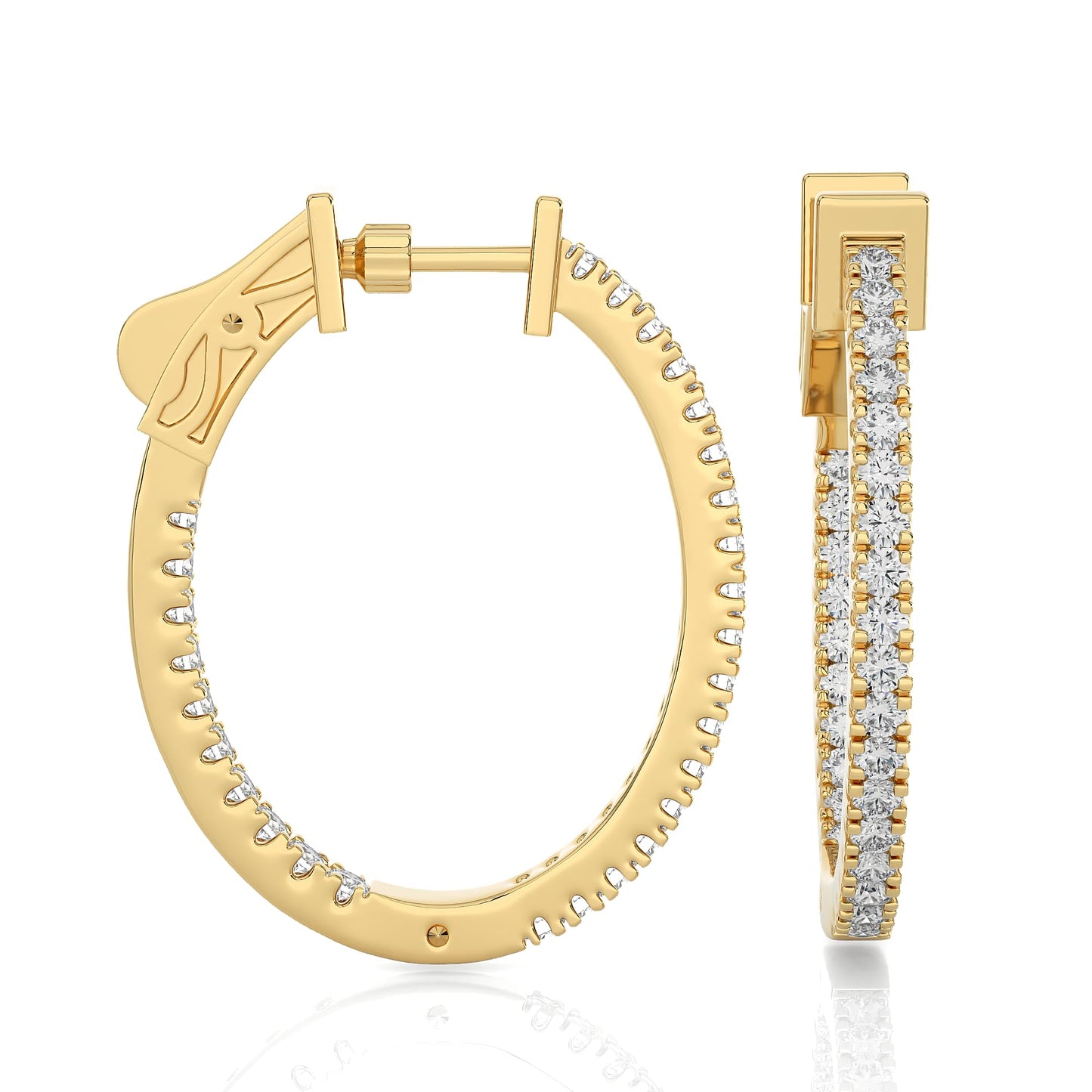 1/2 to 1 Carat Diamond Inside Out Oval Hoop Earrings for Women in 14k White and Yellow Gold (F-G, SI2-I1, cttw) Screw Back by Privosa Fine Jewelry