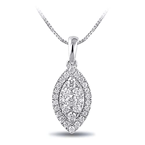 - ELEGANT AND CLASSIC - All components of this pendant were crafted in real, solid, 14k White Gold (rhodium plated, nickel-safe, and tarnish free). Each pendant features 37 sparkling round brilliant diamonds totaling 0.50 carats set in a beautiful and sleek mounting that is designed to highlight each stone. All the diamonds are hand-selected and matched to ensure a dazzling look! A 16-inch silver chain that fastens with a spring ring clasp also accompanies each pendant