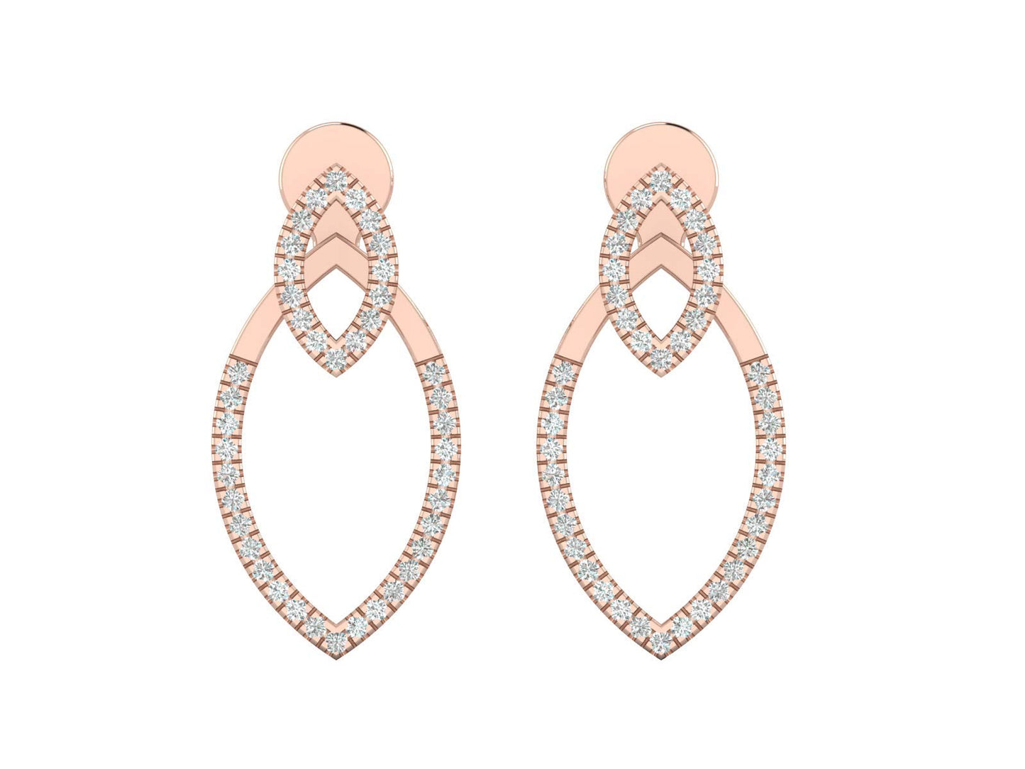 14K Gold (White, Yellow, or Rose) 1/3 Carat (G-H Color, SI2-I1 Clarity) 3-in-1 Natural Diamond Earrings/Studs/Jackets for Women - Rose Gold