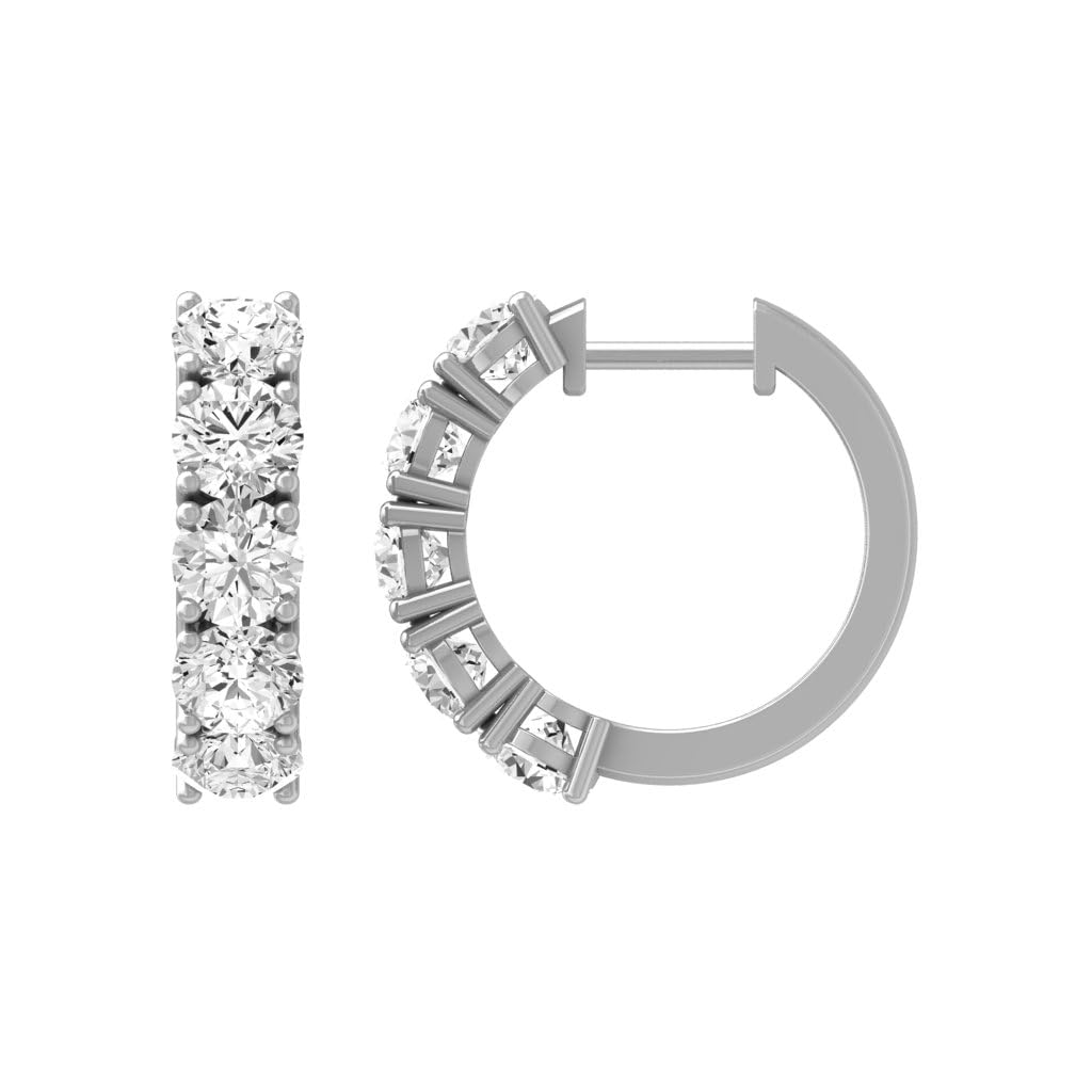 1 to 4 Carat Lab Grown Diamond 5 Stone Hoop Earrings for Women I 14k White Gold Hoops (E-F, VVS1-VVS2, cttw) Hinged Hoop Earrings by Privosa Fine Jewelry