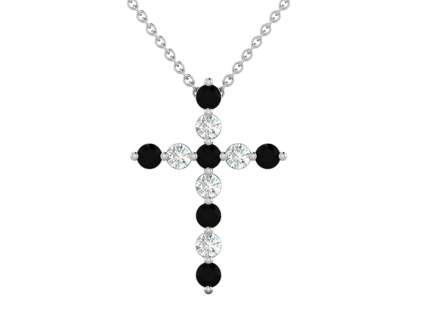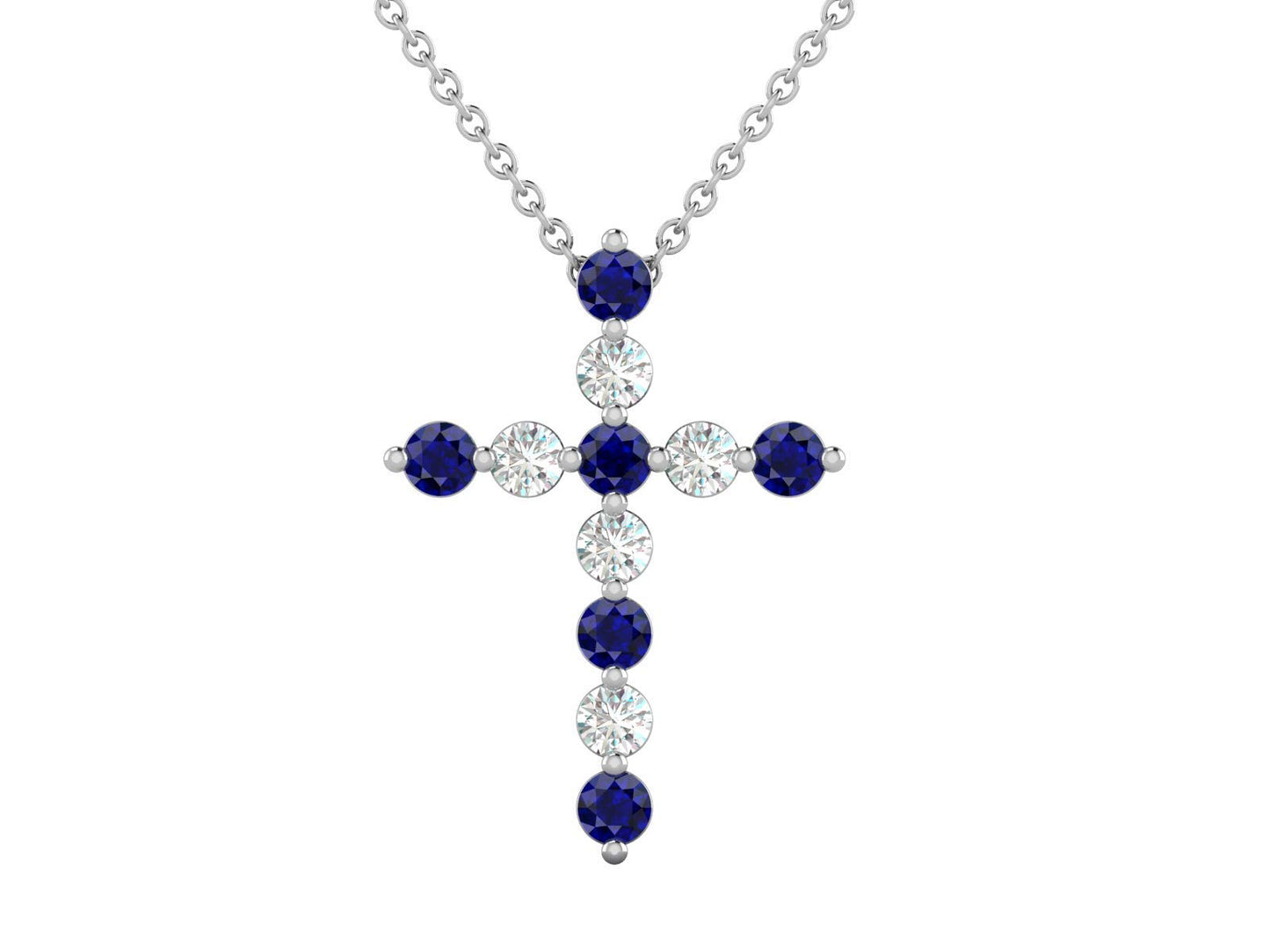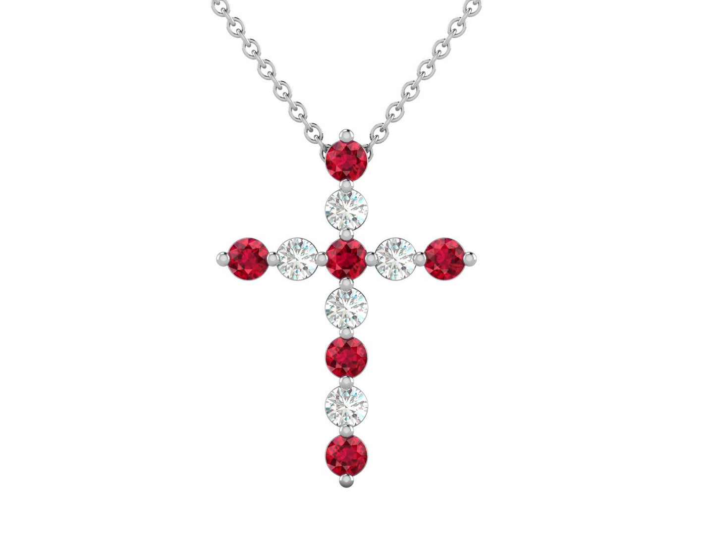 1/10 Carat Diamond and 1/5 Carat Gemstone Cross Pendant Necklace for Women in 14k White or Yellow Gold (G-H, SI2-I1, cttw) with 18 Inch Silver Chain and Lobster Claw by Privosa Fine Jewelry