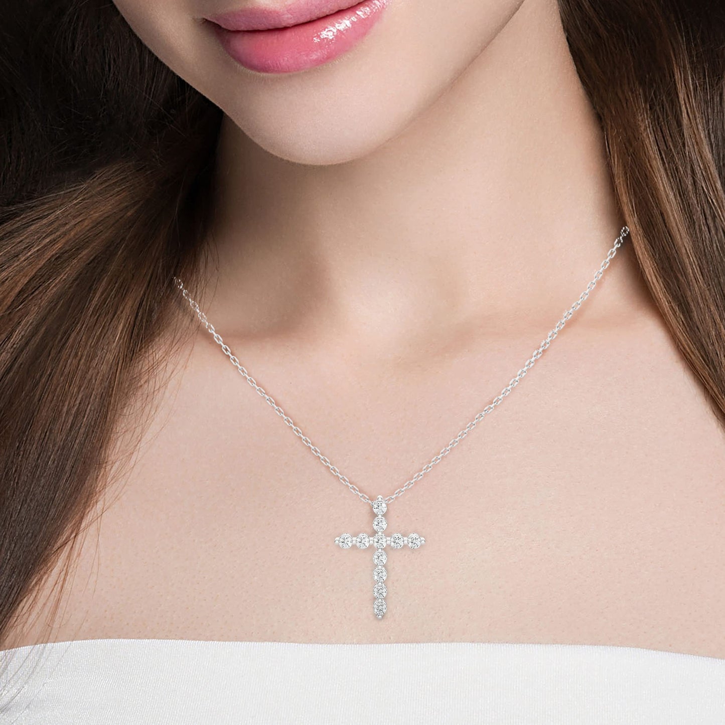 1 to 3 Carat Lab Grown Diamond Cross Pendant Necklace for Women I 14k White Gold Pendant I 16 to 18 Inch Adjustable Silver Chain (E-F, VVS1-VVS2, cttw) I Lobster Claw Clasp by Privosa Fine Jewelry